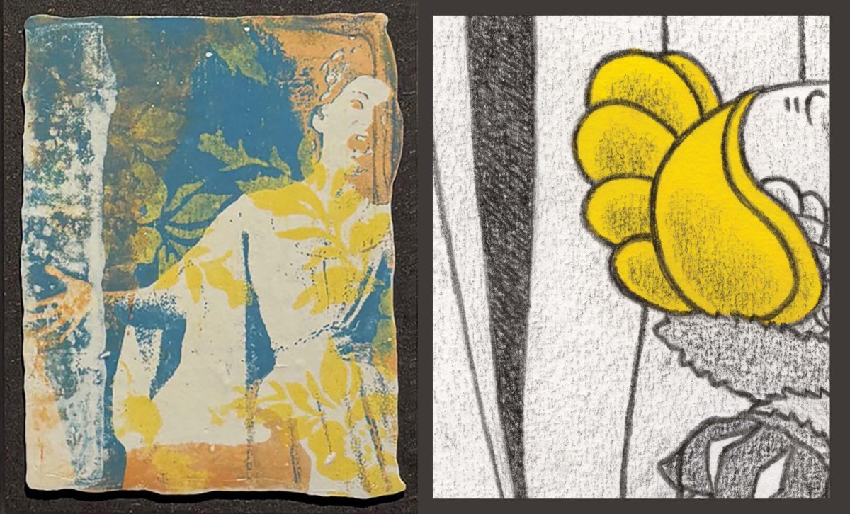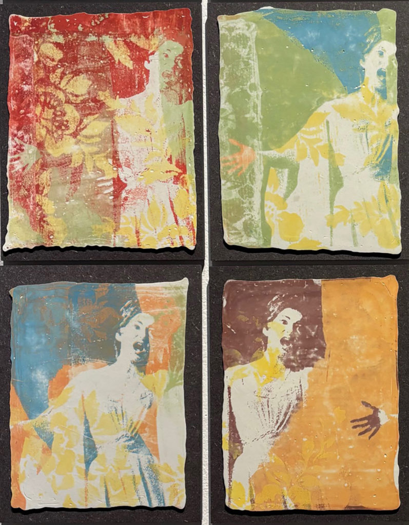 Ci-dessus quatre plaques de porcelaine extraites de Callasatours, série de seize plaques réalisée par Mireille EXCOFFIER.
